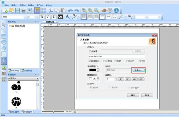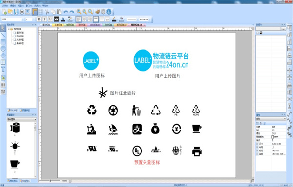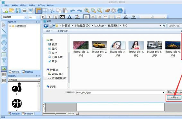 文本添加成功,这时候我们可以在标签中调整文本的大小和位置。接下来我们可以试一下将图片添加到标签中。点击软件主界面编辑区域左边的图片添加按钮,就可以打开图片添加功能。用鼠标点击标签编辑区域。就可以打开图片选择窗口,选择图片添加到标签中;