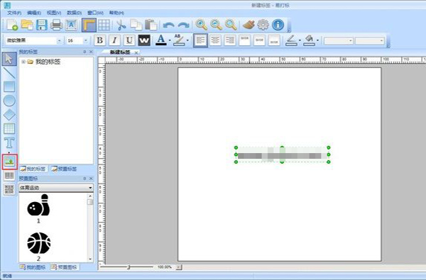 现在我们就可以开始编辑标签的内容了。点击软件主界面左边编辑功能中的文本按钮,就可以打开文本编辑功能,然后用鼠标点击软件主界面的编辑区域,就可以添加文本内容;