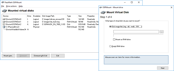 1、OSFMount是一款小巧的虚拟磁盘软件,不仅支持常见的光盘映像格式,还支持硬盘鉴证映像文件和VMware的VMDK文件。同时还支持部分映像格式的回写和扩展大小。默认情况下,映像文件被安装为只读,不改变原映像文件。OSFMount还支持RAMdisk方式安装,能将映像文件加载到内存中以加快访问速度。2、映像文件有多个分区时可选择装载指定分区或全部装载。汉化时目测能识别的文件系统超过20种,甚至还包括古老的DOS3.3X和小众的QNX-_-!总体来说与VDM类似,但比VDM要好些。