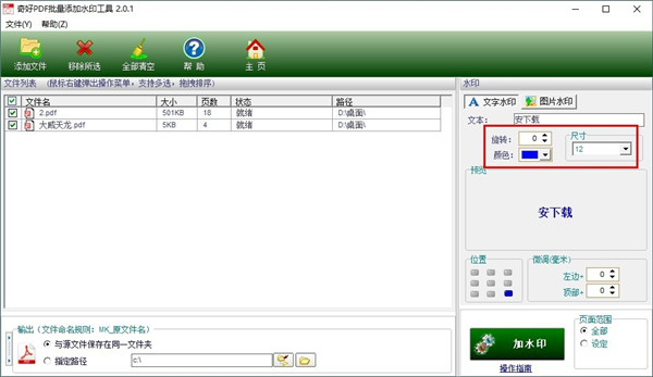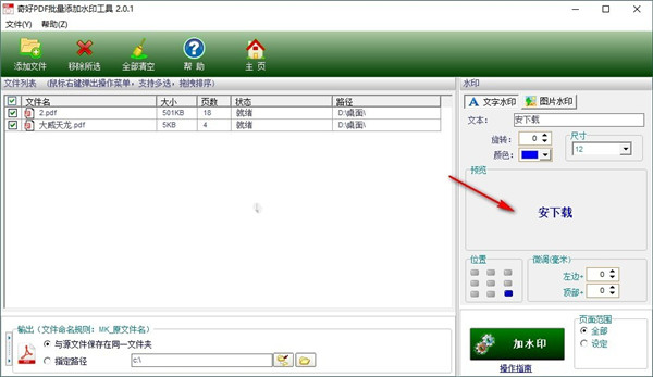 2、批量处理支持,可以一次为多个PDF文件添加水印。
