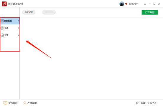 1、功能区 软件提供了屏幕截图和其他的功能,在这里看见所有功能的汇总,非常方便查找。
