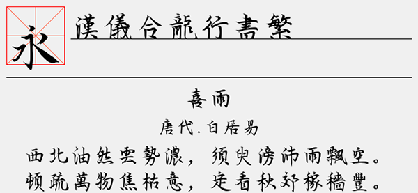 汉仪合龙行书繁是一款潇洒美观的行书字体,是书写着李合龙所书写,改字真的非常好看,行云流水的字体笔画,看起来非常赏心悦目。且颇有力道,给人一种有力道、大气的感觉,整体效果极佳。可以广泛应用于广告设计、宣传海报、ppt、影视制作、文本装潢、信息展示、网页设计、篆刻制模、数据制作、装潢设计、计算艺术设计、视觉设计、字帖等一切合法应用场景,有喜欢的朋友可免费下载收藏。