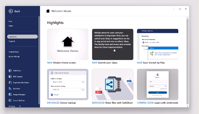 崩溃报告的共享:为了增强WinZip的可用性,用户现在可以直接在应用程序中提交崩溃报告 改进应用程序性能:WinZip的加载时间得到改善。它现在启动速度更快,并适度增强了应用程序的整体性能。 澄清错误消息:我们修改了产品内错误消息中使用的语言,以提供更清晰的解释,确保用户更好地理解遇到的问题。 简化的WinZip更新:更新WinZip现在比以往任何时候都更容易,确保用户始终拥有最新的功能和安全增强功能。 增强的压缩支持:从更新的RAR和7-Zip dll中受益,确保在处理压缩文件时无缝兼容并提高性能。 增强的应用内用户调查:用户现在可以通过将其电子邮件地址添加到应用内调查中来选择加入产品研究。这个机会允许用户直接将他们的反馈传达给我们的产品团队,为WinZip未来功能和改进的发展做出贡献。 重新设计的文件共享电子邮件:通过从WinZip发送的重新设计和修改的文件共享电子邮件,体验改进的通信,确保通信的清晰度和专业性。
