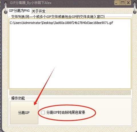 2、直接将其拖入软件内,支持批量分离,然后点击“分离gif”,有需要去除纯黑背景的用户可以勾选对应的选项。