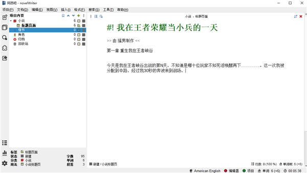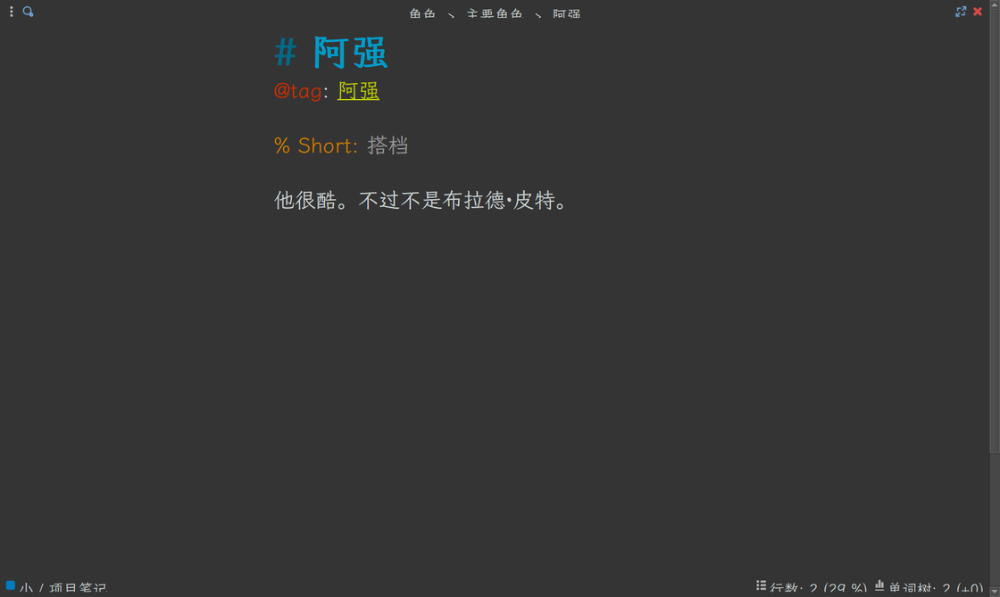 novelWriter作为一款纯文本编辑器,里面没有思维导图、卡片视图,也无法插入图片,正如它的名字novelWriter,它更适合写故事,或者说,它只适合写故事(小说和非虚构的故事)。