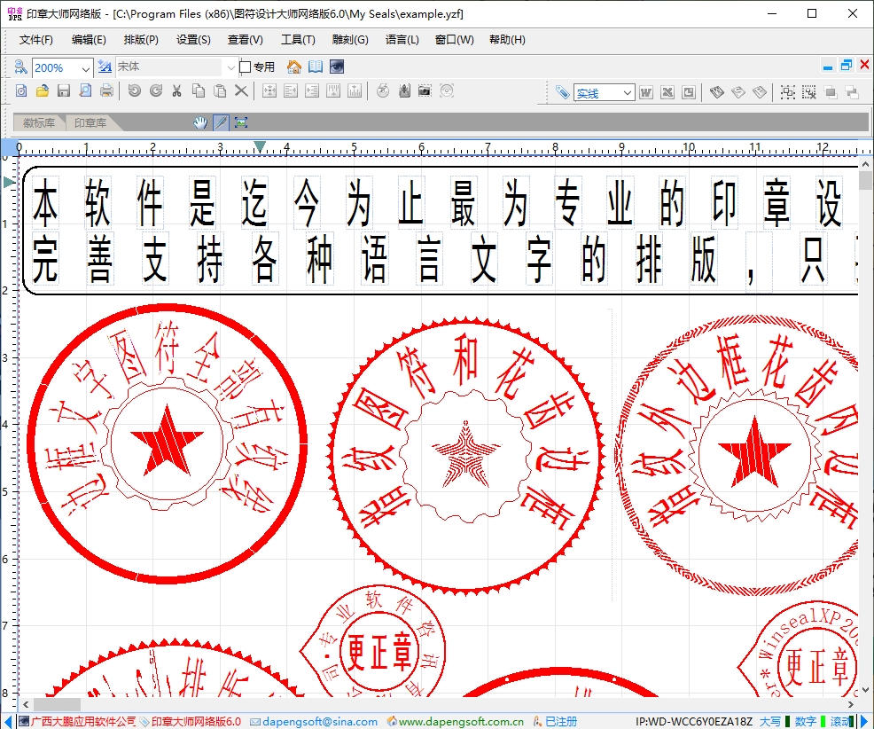图符设计大师网络版是一款制作印章的专业级软件,相比于本地版而言,也就是印章大师,它不仅继承了原有的海量的图章模板,如艺术印章、公章、私章、阳章、阴章等等,它还具备自定义图形绘制、调节图形大小以及支持打印等功能!并且,为了方便用户,图符设计大师网络版还增加了对最新单机版文档的兼容,使得编辑功能更为强大,若是加以内置的港澳台及少数民族等特殊印章图库,可使你可以更加轻松的制作所需的印章!有需要的用户欢迎下载使用。