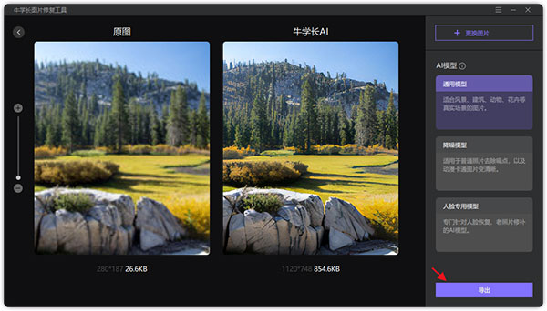 1、一键智能修复 一键重建高清照片; 2、快捷方便 只需一键即可修复任何模糊图片; 3、高清晰,无损画质 不损失质量的情况下提供最佳效果; 4、100% 安全 256位SSL证书保证,无病毒,无广告,无风险。牛学长图片修复工具怎么用?