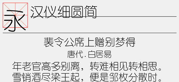 汉仪细圆简字体是一款比较有趣的简体字体。该字体有个很鲜明的特点,就是点的笔画都是圆形,并且是半实心半空心,非常有特色。字体较为圆润、骨架较大、笔画粗细适中,端正大气,醒目的字形在标题等需要博人眼球的地方较为合适。可以应用于文本装潢、信息展示、网页设计、篆刻制模英文、数据制作、装潢设计、计算艺术设计、视觉设计、字帖等一切合法应用场景,有喜欢的朋友可免费下载收藏。