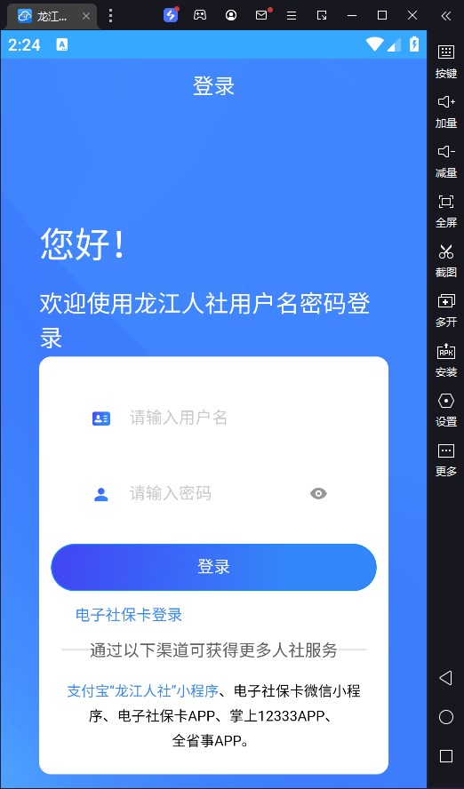 龙江人社电脑版是借助安卓模拟器运行在pc端的一款便捷的养老认证和查询服务的软件,让异地居住人员,年老体弱或患病的退休人员,可以在手机上就能进行养老认证,操作简单又好用,给大家的生活带来了许多方便。欢迎下载使用!