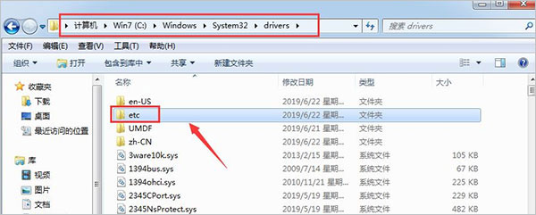 1、进入计算机,进入系统盘,定位到C:\Windows\System32\drivers文件夹,找到etc文件夹,如下图所示;