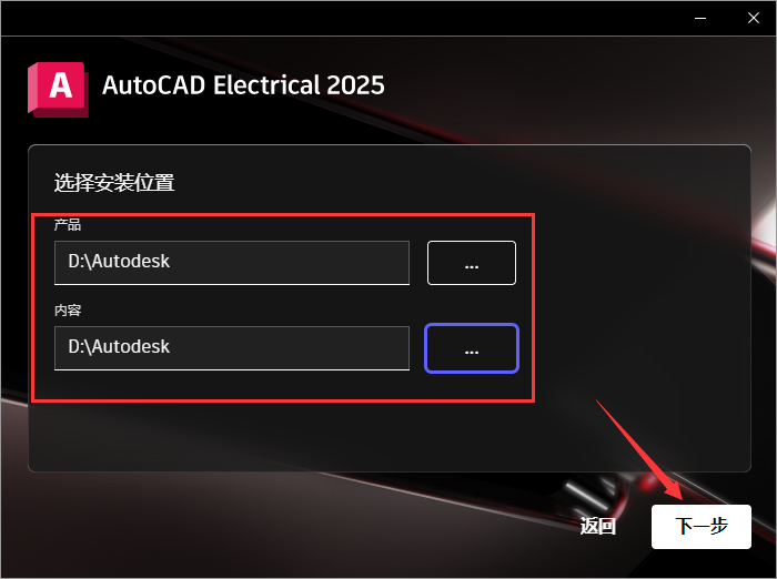 5、选择安装位置,点击…进去更改安装位置(建议产品和内容的安装位置都在同一个路径,并且更改安装位置不能带有中文或特殊符号),然后下一步。
