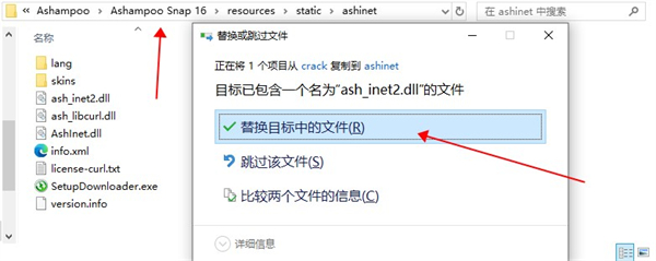 6、将crack文件夹中的ash_inet2.dll文件拷贝至【C:\Program Files\Ashampoo\Ashampoo Snap 16\resources\static\ashinet】进行替换;