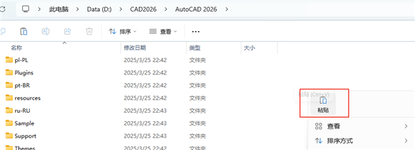 6、返回之前解压的“CAD 2026”文件夹,双击打开“Crack”文件夹,选中“Patch.exe”文件,鼠标右键点击“复制”温馨提示:若打开没有破解文件,说明被电脑杀毒软件隔离了,请关闭电脑上的“杀毒软件、防火墙”,Win10及以上系统还需关闭“Windows Defender”(部分电脑自带“迈克菲”也要关闭),重新解压即可。