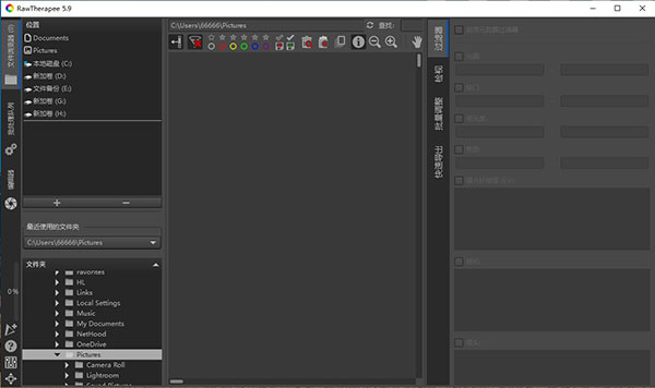 4、rawtherapee中文版用来浏览图片是非常方便的,因为左侧栏使用目录树显示,而浏览图片时不常用的右侧栏也可以隐藏