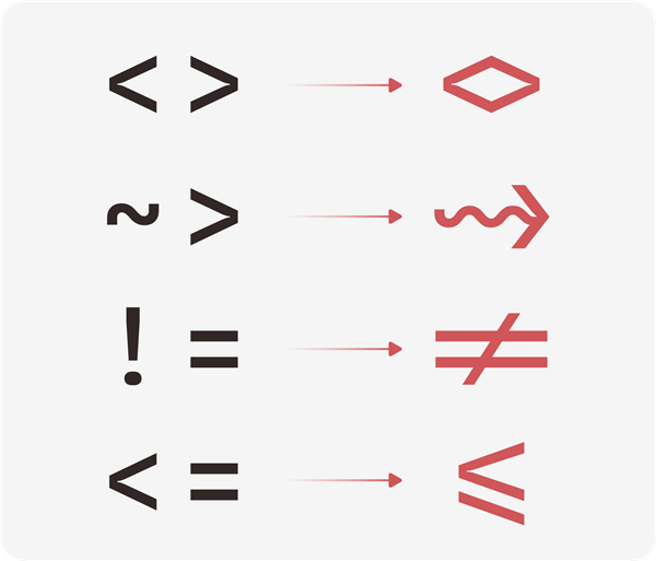 对程序员友好,我们特别选择了具有连字显示特性的等宽字体展示代码片段,提升代码可读性。