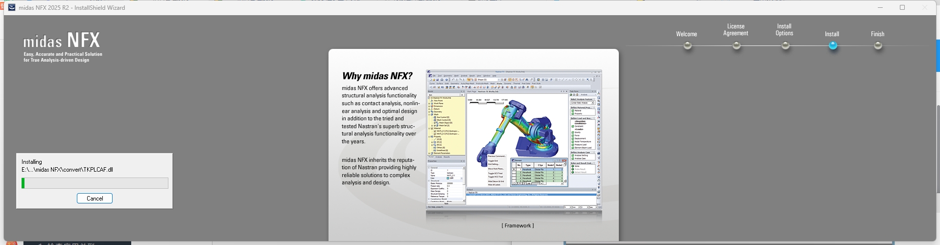 1、更短的产品开发周期 - 广泛的 CAD 接口。 - 高速、高质量的网格生成器。 - 用于处理大型模型的高级解算器。 - 装配体中的自动销钉检测,轻松可视化以及配合和负载管理。 2、设计过程的高效自动化 - 两种界面选项:工程和简化。 - 快速求解器以及通过后续重新计算“即时”修改产品的能力。 - 计算网格的简单创建。 - 广泛的材料基础,包括各向异性。 - 考虑辐射和传热计算中材料的光学特性。 - 一组标准边界条件和载荷的模板。 - 解决方案并行化的可能性。 3、简化创新产品的开发 - 根据各种标准轻松形成模型并解决优化问题。 - 预先配置的计算模板。 - 能够在计算过程中创建自适应网格和重新划分网格。 - 根据静态/优化拓扑(零件形状)动态分析数据。 -先进的磨损计算功能。 -进行设备元件可靠性评估测试。 4、一种单一的集成解决方案,用于执行机械工程中遇到的各种设计任务 - 在一个模型的空间中提供结构、热和气体动力学计算。 - 考虑预载和零件相对位移条件的模态分析。 - 稳定性分析设置组件中零件的允许相互位移。 - 密度热通量的确定。 - 线性动态分析。 - 非线性接触问题的计算。 - 冲击载荷的高级非线性分析。 - 一个模型中的刚性和弹性结构的联合分析。 - 线性和非线性的组合在一个模型中进行分析。Midas NFX 2025安装激活教程