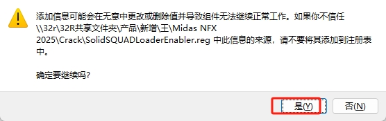 21、再次返回“Crack”文件夹,双击“SolidSQUADLoaderEnabler.reg”注册表文件。