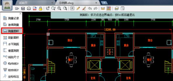 2、在导入图纸的情况下选择更多测量,点击测量面积