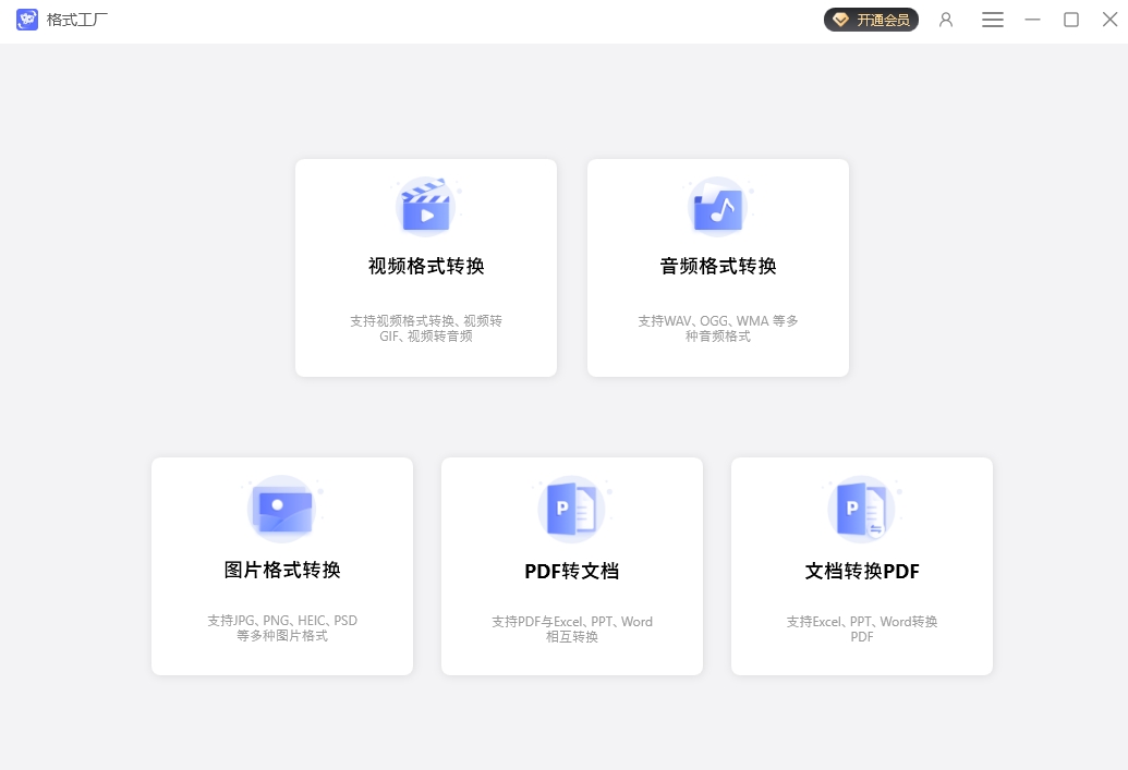 1、视频格式转换 支持视频格式转换、视频转GIF、视频转音频。 2、音频格式转换 支持WAV、OGG、WMA 等多种音频格式。 3、图片格式转换 支持JPG、PNG、HEIC、PSD等多种图片格式。 4、PDF转文档 支持PDF与Excel、PPT、Word相互转换。 5、文档转换PDF 支持Excel、PPT、Word转换PDF相互转换。软件特色