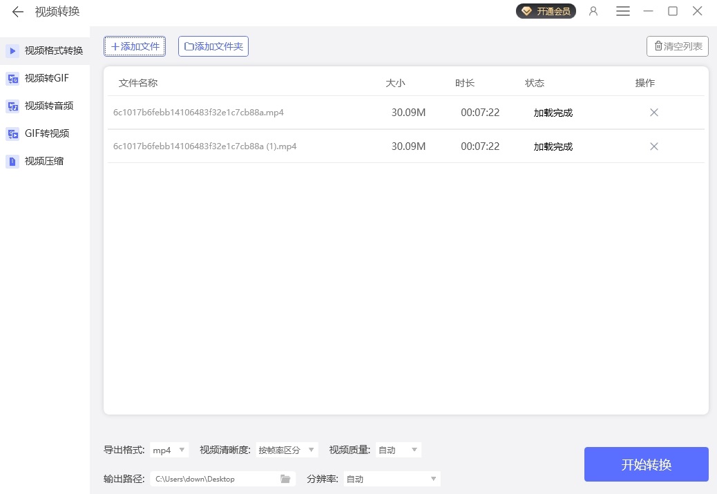 3、选择需要转换格式的视频文件,然后设置输出文件的保存路径,确认无误后点击“开始”按钮,即可完成格式转换。