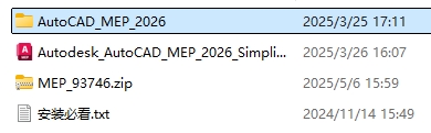 1、把下载的安装包解压,打开Autodesk AutoCAD MEP 2026 文件夹。