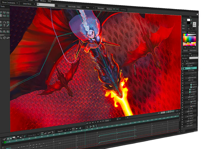Moho 中独特的矢量系统针对动画和索具进行了优化,使形状在移动时始终保持一致。Moho 矢量工具允许您直接在软件内部绘图。您还可以添加画笔和效果,轻松获得自然的结果。一切都可以动画化:曲率、线宽、曝光、曲线轮廓、路径、蒙版、渐变、不透明度、点颜色......Moho 的灵活工具将使您能够为任何样式制作动画!