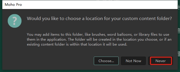 18、点击打开桌面的Moho 14,弹出对话框,点击Never
