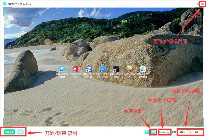 3、录制完成后,点击录制框右上方的“×”按钮,即可回到gif编辑页面,对录制完成的gif进行编辑。