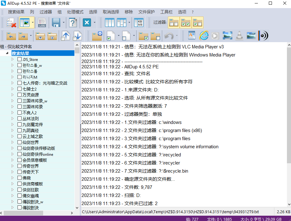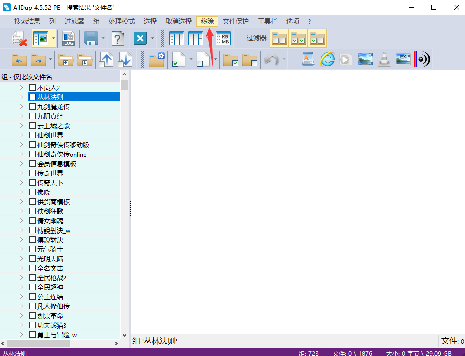 Space 选择或取消选择文件/组 F2 重命名文件 DEL从搜索结果中删除一个文件 CTRL+DEL 删除文件AllDup怎么批量删除重复文件