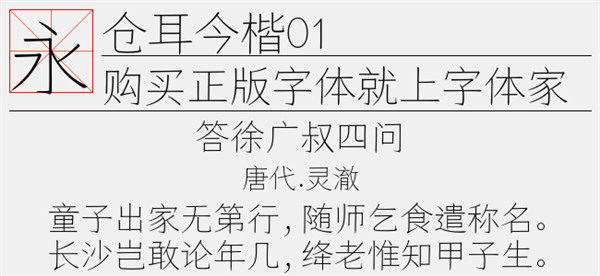 仓耳今楷字体是一套适用性非常广泛的中文简体字体,设计师在笔形的设计上借鉴了中国传统楷书,在字体结构上,创造性的调整了笔画的空间布局,让字体在电子屏幕上的识别度更高,使读者能够从中得到更为舒适、愉悦的阅读体验。字体包括仓耳今楷w01/w02/w03/w04/w05,其笔力劲健挺拔,瘦劲精匀,整体效果更加出色,能够应用于文本装潢、信息展示、网页设计、篆刻制模、数据制作、装潢设计、计算艺术设计、视觉设计、字帖等一切合法应用场景,有喜欢的朋友可免费下载收藏。