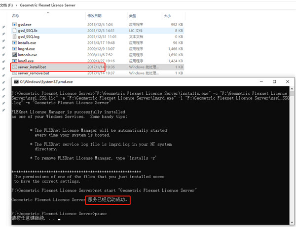 3、以管理员身份运行\Geometric Flexnet License Server\server_install.bat一直等到提示
