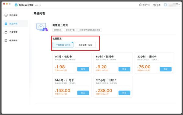 2、选择想要的套餐配置,点击进入购买界面