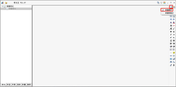1、下载软件压缩包,双击打开“KingNoteBook.exe”软件,点击下图红色选框下的新建笔记。