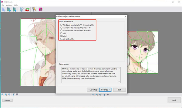 1、专为轻松创建GIF动画文件而设计 2、可以轻松创建专业的.gif动画,甚至可以将.jpeg和.bmp图形自动转换为.gifs 3、只需将其打开即可使用该程序的用户友好界面 4、可以使用透明背景,为每个帧选择延迟时间,并轻松更改帧的显示顺序 5、支持所有类型的GIF动画,并为动画GIF图像提供高压缩率和高质量 6、轻松创建动画横幅,图片和按钮,支持许多流行的图形格式 7、例如BMP,JPG,PNG,GIF,TIF,ICO,PSP,PSD,TGA,EMF等 8、自动将.jpg,.ico,.bmp和其他图像格式转换为.gif,设置动画循环计数和帧持续时间 9、从头开始创建动画GIF图像,管理动画帧,创建速度快,预览GIF动画,通过五步工作流程简化GIF创建 10、调整动画的速度,易于使用的直观界面,无需特殊培训或知识 11、通过五步工作流程简化GIF创建,调整动画的速度,易于使用的直观界面,无需特殊培训或知识VidMorph使用方法
