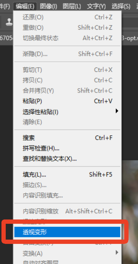 2、点击【编辑】,选择【透视变形】。