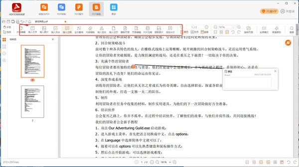 2、在顶部工具栏选择“编辑”功能,直接点击文档中的文字或图片进行修改、删除或添加新内容;使用“注释”工具可添加批注、高亮、形状或签名。
