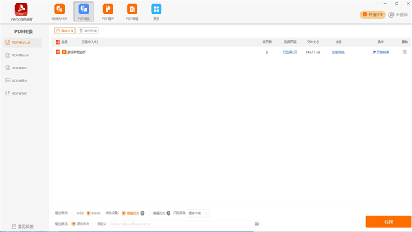 3、点击pdf转换菜单,选择目标格式(如Word、Excel、PPT、图片等),设置输出选项后点击“开始转换”将PDF导出为其他文件;也可将其他文件拖入软件直接转换为PDF。