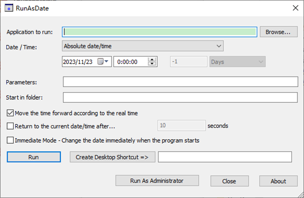 RunAsDate允许用户设置虚拟的日期和时间,以便在指定的日期和时间下运行程序。用户可以自定义年、月、日、时、分、秒等参数。