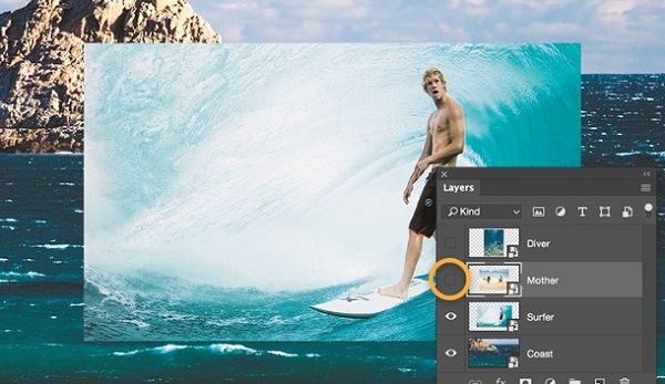 在“Layers”(图层)面板中上下移动图层可调整图片显示的先后顺序。