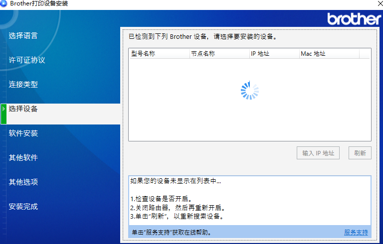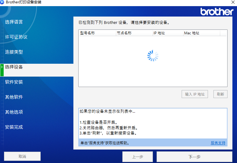 4、选择要安装设备的连接类型,支持有线网络连接和本地USB连接,用户可根据自己的实际情况将兄弟HL-5595DN打印机连接到电脑上