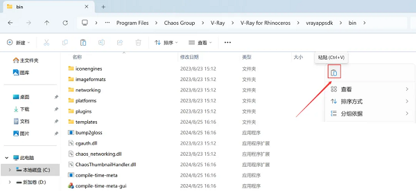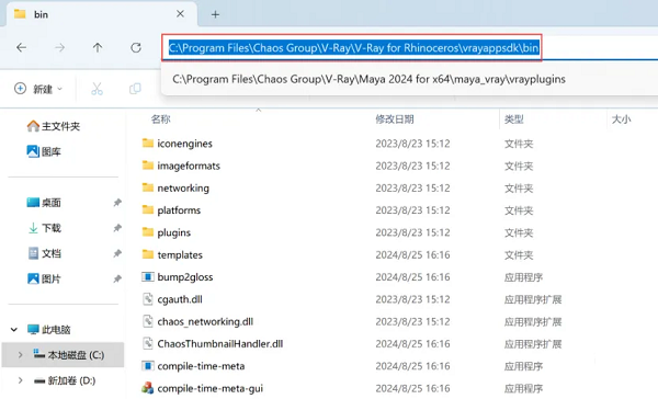 12、打开路径:C:\Program Files\Chaos Group\V-Ray\ V-Ray for Rhinoceros\vrayappsdk\bin\plugins。