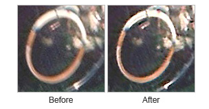 尽管“增加分辨率”滤镜的运行速度比 Photoshop 中的放大速度慢很多,但它会产生更清晰的输出(如下图所示)。