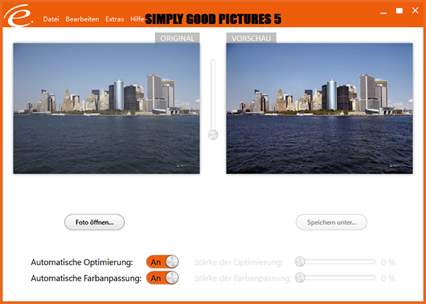 尽管用于重建和优化照片的算法和数学步骤与Photomizer中使用的相同,但该应用程序并没有后者那么多的图像增强功能。Simply Good Pictures不支持批量模式,因此您只能逐个优化一张图片。但是,它在功能上的不足可以通过易于操作和完全可靠的成果来弥补。为了快速编辑照片,您可以选择自动优化选项,但请注意,这样做将无法使用自动颜色功能。当您取消自动选项时,您可以使用滑块来增加或减少优化过程的强度。