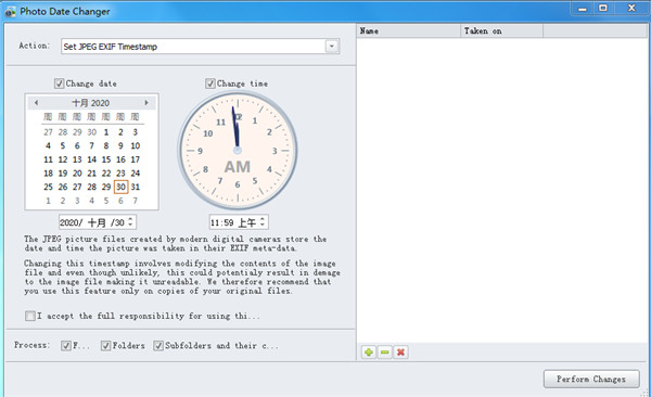 photo date changer是一款十分简单易用的照片日期修改工具应用,该软件不仅界面简约清晰、且功能齐全具备了简单直观的操作方式。其主要目的旨在让用户可以通过简单的方式轻松、有效的修改照片文件中的各种时间、日期信息等内容。并且支持用户对JPEGEXIF时间戳随心设置操作,提供了修改类型、设置日期与时间、添加文件到列表等多种功能任你使用。