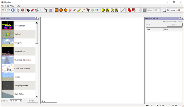 Physion是一款平面二维模型绘制设计软件。该软件功能非常的强大,你能够通过设计不同的二维模型,结合软件自带的物理模拟系统,可以实现非常多的效果。比如,你利用这些实现一个‘愤怒的小鸟’类似的游戏。而且你不需要任何的编程知识,只需要一点点想象力和创造力,随意的拖动模型,就可以创造一个独一无二的模拟物理系统了。右边的下拉菜单,可以控制物体的运动方向,而“R”可以让物体静止在那边,不然任何物体都会往下掉的。感兴趣的用户可以来本站下载Physion体验一下吧!