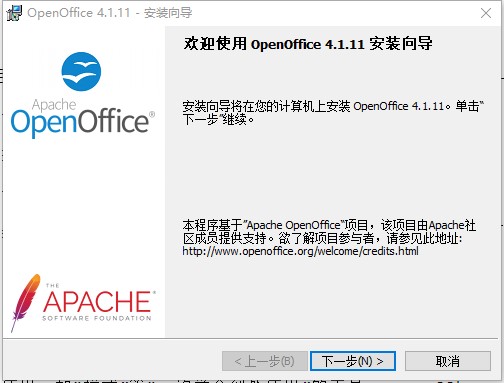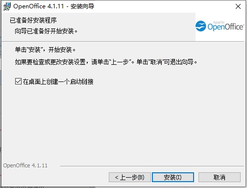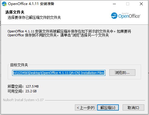 2、双击exx开始安装,默认安装目录【C:\Users\123456\Desktop\OpenOffice 4.1.11 (zh-CN) Installation Files】,依提示继续安装;