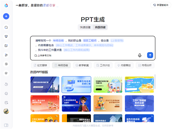 1、在对话框中提出生成ppt。
