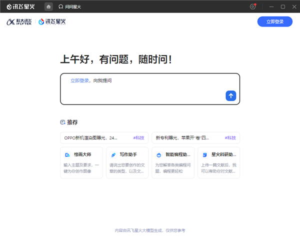 讯飞星火电脑版是由科大讯飞推出的新一代电脑AI智慧助手,具有先进的语音识别、自然语言处理和机器学习能力,提供语言理解、知识问答、逻辑推理、数学题解答、代码玛理解与编写等多种能力,为用户的工作、学习、生活等方面提供便捷服务。