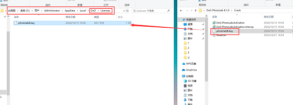 11、复制photolab8.key到C:\Users\Administrator\AppData\Local\DxO\Licenses\中(如果没有DxO\Licenses文件夹的话,自己新建一个就好了)。