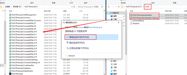 10、将Crack文件夹里面的DxO.PhotoLab.Activation.dll和DxO.PhotoLab.Activation.Interop.dll复制到刚才打开的软件安装目录位置下替换。